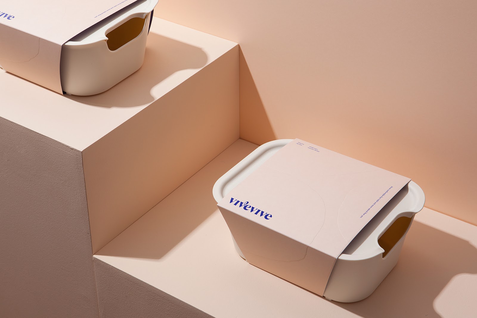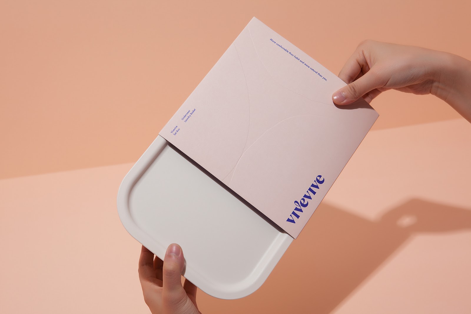 來自于韓國的CFC設(shè)計工作室為女性內(nèi)衣品牌vivevive做的視覺識別和包裝設(shè)計。最自然的身體是美的,CFC用抽象的手法描繪了女性美麗的身體曲線,也用此詮釋著身體最舒適的狀態(tài)。通過對比的大面積色塊拼接來描繪身體局部,很好地抓住了女性身體曲線的特征。又用了膚色的暗淺來描繪局部的光線變化。雖然非常抽象,但能引人聯(lián)想,識別度很高。