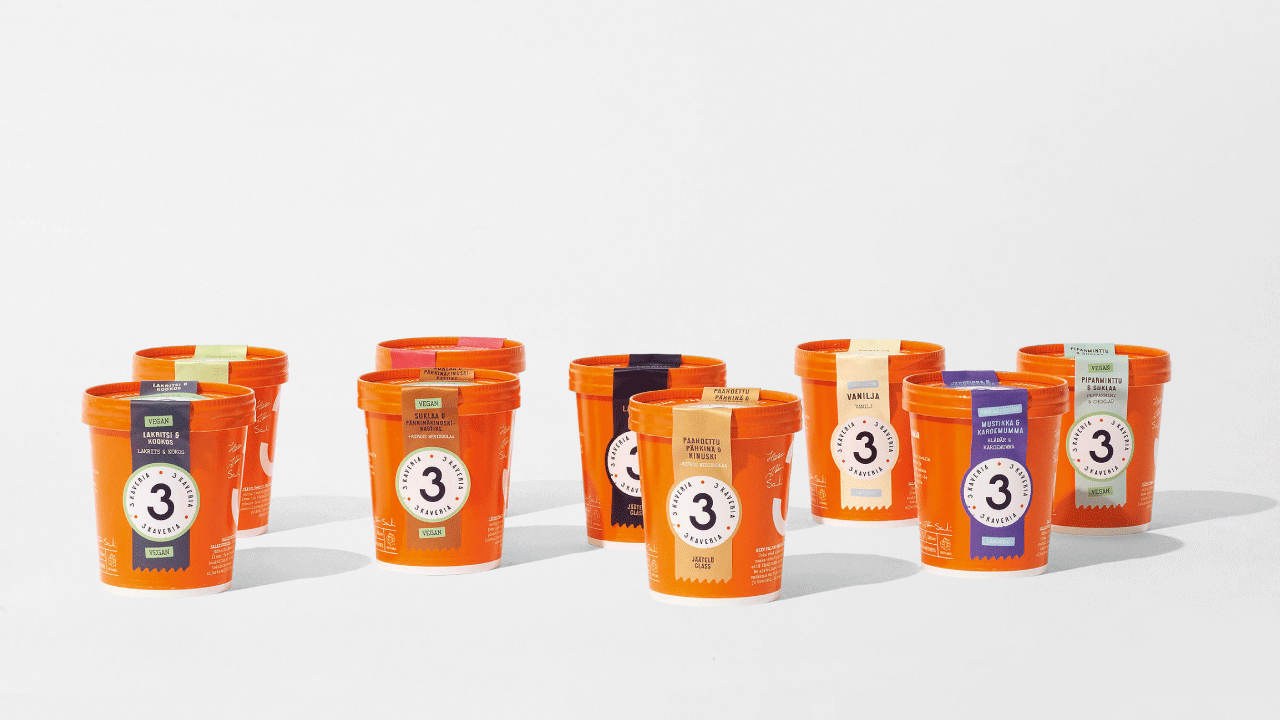 這是芬蘭第一個(gè)手工冰淇淋品牌,由3位熱情的冰淇淋愛好者所創(chuàng)立。他就像真正的朋友一樣,3 Kaveria冰淇淋也不是秘密。它僅由優(yōu)質(zhì)天然原料制成,因此沒有理由解釋或隱藏任何東西,包它自己,為了在冰箱中更好地脫穎而出,它使用明亮的橙黃色可以使它在眾多偏冷色系的同類產(chǎn)品中格外的醒目。