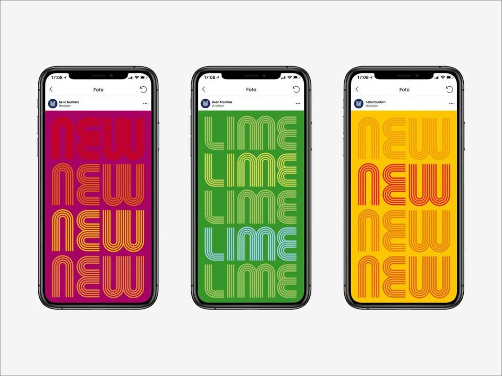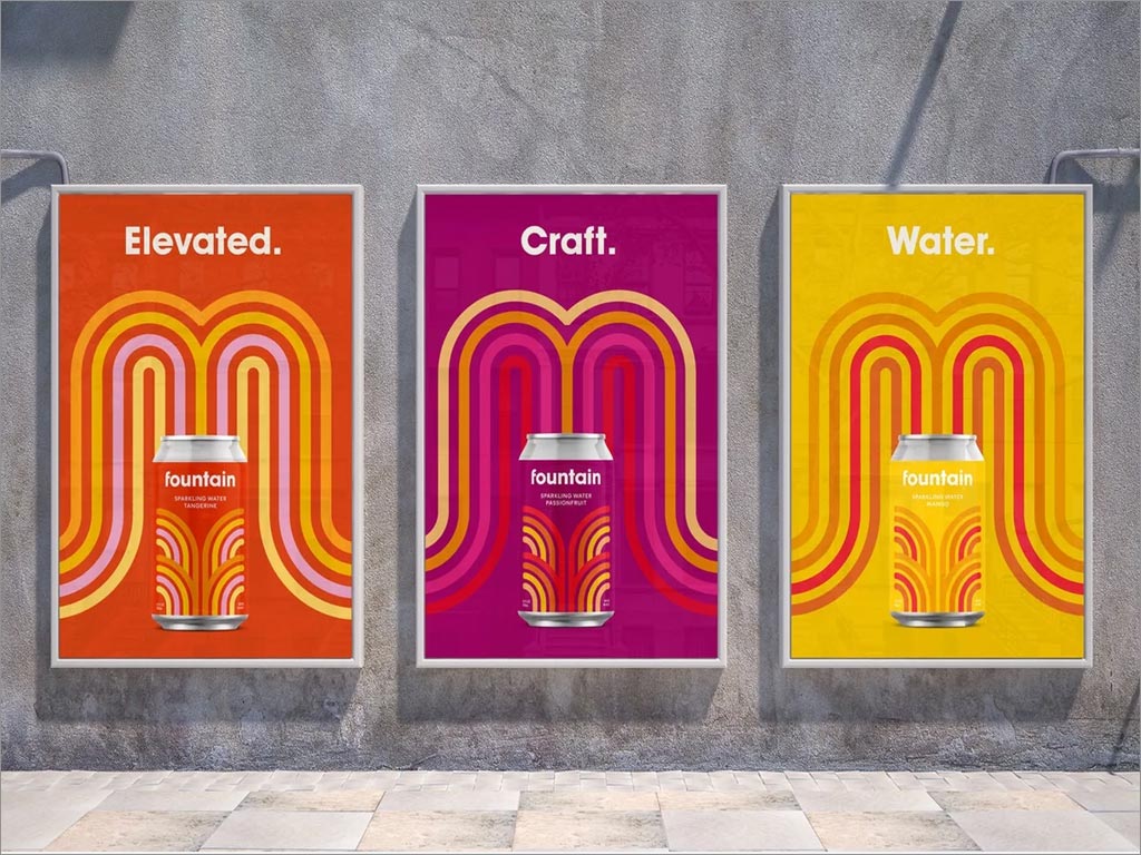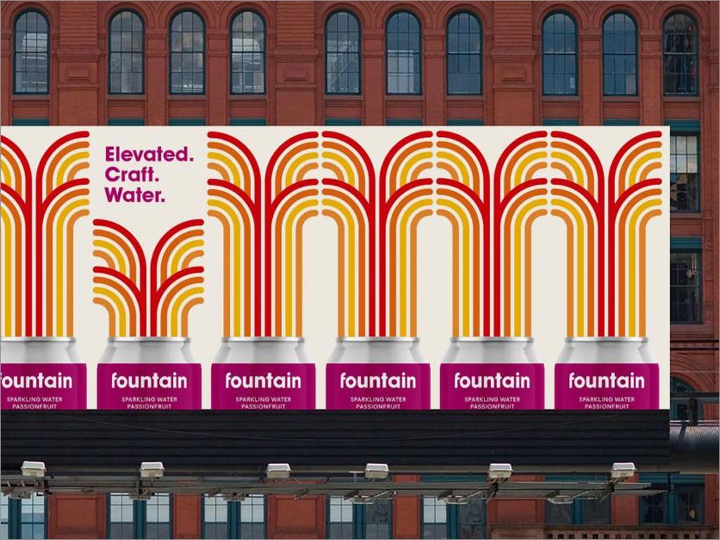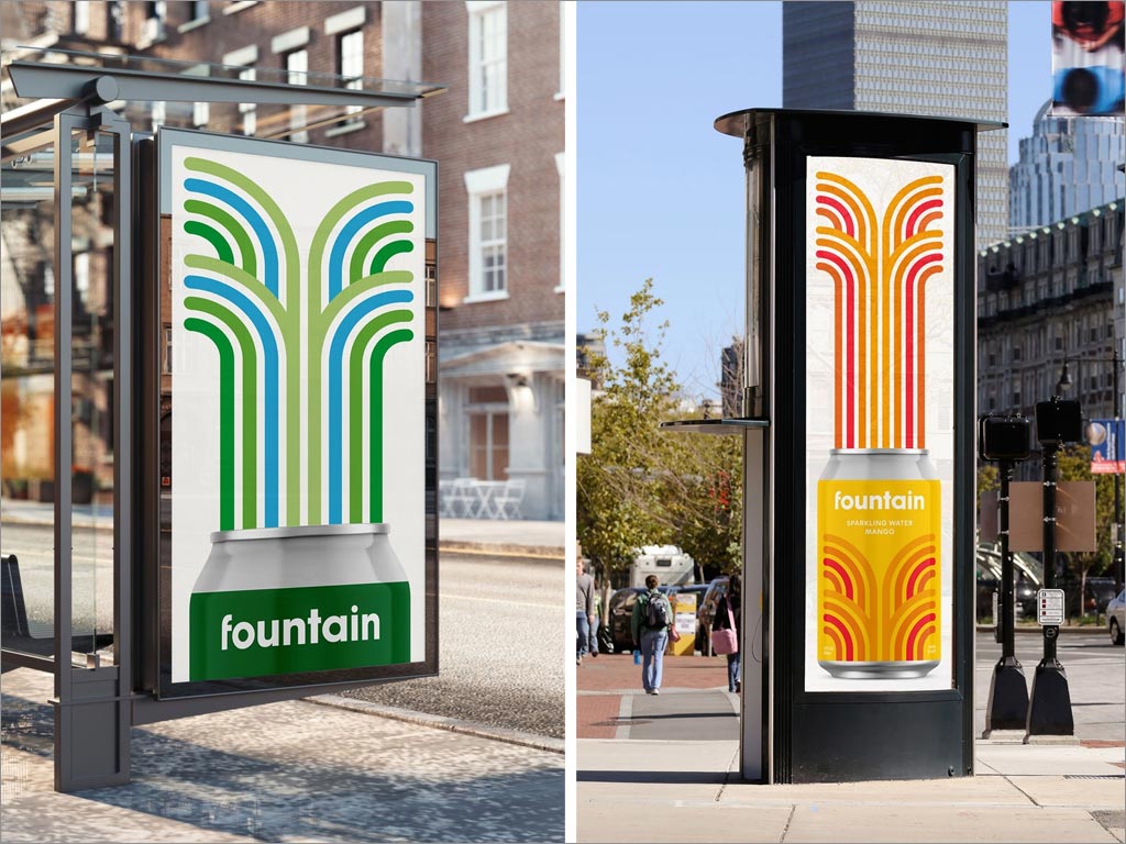 五角星設計公司作為Fountain品牌logo和包裝設計服務商,以幫助他們的品牌在一個已經很擁擠的空間中脫穎而出五角星設計公司決定出奇制勝,將此款飲料定位在好玩、有趣、活力四射的角度,采用彩色的方法,以圓形和有機的線性圖案作為logo設計的基礎,該設計從包含蘇打水的天然成分以及品牌名稱中獲得靈感,創造了虛擬噴泉的形象,因為每個人都有打開易拉罐被噴灑的時候,就像他的品牌符號一樣,深入人心