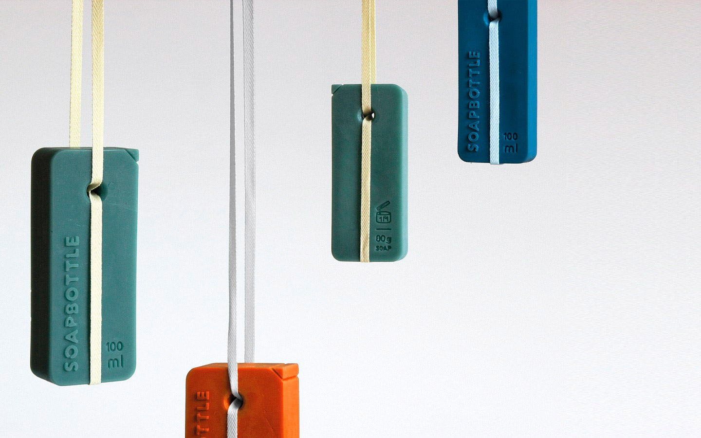 SOAPBOTTLE 在設計中加入了無包裝化妝品的概念,具體方式是將產品本身成為其自身的包裝。采用天然材料制作的香皂具有可生物降解的特性,因此可以完全避免垃圾產生。它外部的包裝由肥皂制成,隨著時間的推移會逐漸降解。與傳統的塑料容器不同,它不會留下任何廢物,也不會導致任何環境污染。每個瓶子的頂部都有一個孔可讓細繩穿過,從而提供了簡單且可重復使用的存儲方法。當液體用完后,剩下的部分還可以當作洗手香皂使用,或是再次加工成其它洗滌劑或清潔劑使用。